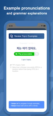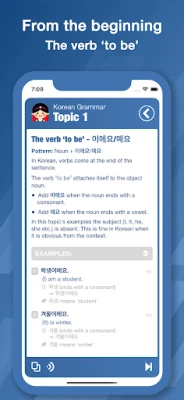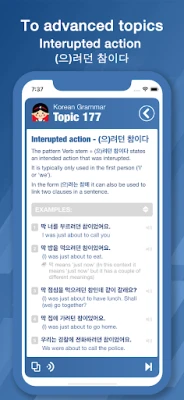 「Bootstrap Korean Grammar」は、綿密に構築された「トピック」を通じて、ステップバイステップで学習を進めます。各トピックは、新しい文法パターン、関連語彙、そして豊富な用例を少しずつ積み重ねるように設計されており、無理なく知識を定着させます。3200を超える例文は、ただ読むだけでなく、具体的な文脈での意味や、その文法がどのように機能するかを詳細に解説。さらに、学習者の語彙力も自然と向上するよう、文法と共に数百の新しい単語も紹介され、実践的な会話力と読解力の向上を強力にサポートします。