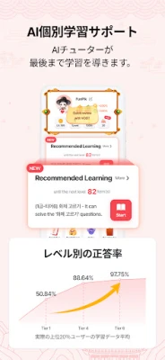 FunPikは、その革新的な学習システムで、驚くほどの速さであなたの韓国語スキルを飛躍させます。専門家が監修したVOD講義と体系的なカリキュラムにより、わずか2週間でハングルの読み書きを習得し、6ヶ月後にはTOPIK 3級レベルへの到達も夢ではありません。読む・聞く・書く・話すの四技能をバランス良く鍛えるコンテンツに加え、7,000問以上を誇る世界最大級のTOPIK問題バンクと模擬試験で、目標スコアを確実にクリアします。学習はクエストやミッション、報酬システムといったゲーム要素で「遊び」へと昇華し、AIチューターがあなたのレベルを16段階で分析し最適な学習パスを提示。まるで専属の先生がいるかのように、弱点を克服し成長を加速させます。