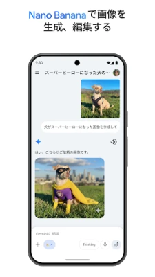 あなたのスマートフォンに、Google AIが誇る最先端のAIモデルファミリー「Gemini」が登場。日々の生活から創造、学習まで、あらゆる側面を強力にアシストします。リアルタイム対話機能「Gemini Live」では、複雑な話題の要約から重要な面接のリハーサルまで、AIと深く対話。カメラや画面を共有し、映し出されるコンテンツについて話し合う新次元のコミュニケーションが可能です。「Canvas」でアイデアを具現化し、アプリ、ゲーム、ウェブページ、インフォグラフィックなどのプロトタイプを生成。Google検索、YouTube、Googleマップ、GmailといったGoogleサービスとの連携で、情報収集やタスク管理も劇的に効率化します。学習支援、ファイルからポッドキャストへの変換、簡単な指示で画像を生成・編集する能力も備わっています。特に、Gemini 2.5 Flashを基盤とした最先端の画像生成・編集モデル「Nano Banana」は、あなたのビジュアルクリエイティビティを次のレベルへと導きます。