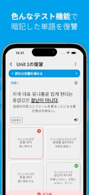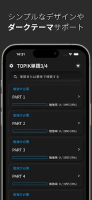 学習の進捗状況も、パート別、ユニット別に細かく管理可能。全体の復習機能では、特に間違いやすい単語が優先的に表示されるため、使えば使うほどあなたに最適な学習環境が構築されます。オフラインでの学習も「TOPIK3/4」の大きな魅力。一度アプリの内容が読み込まれれば、インターネット接続がない場所でも、いつでもどこでも学習を続けられます。目に優しいダークテーマやiPad対応はもちろん、気になる単語は長押しでコピーし、さらに深く探求する機能まで搭載。あなたの韓国語学習を、どこまでもスマートにサポートします。