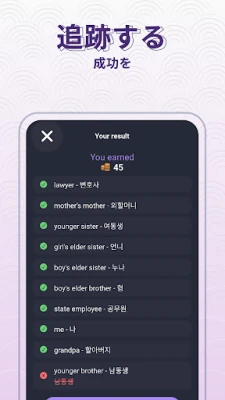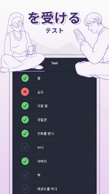 新しい単語を覚えるプロセスが、もっと楽しく、もっと効果的だったら?2Shine独自の反復ゲームシステムは、まるで遊びながら学ぶように、韓国語の単語やフレーズを自然に身につけられる画期的な体験を提供します。単に意味を理解するだけでなく、特にB1レベルでは、学んだ語彙を文脈の中で自在に使いこなす実践的な能力を育成。発音練習を通じて、正確な聞き取りとスムーズな発話能力を同時に向上させ、韓国語を読む速度も飛躍的に高めます。TOPIK、EPS TOPIK、KLAT、KLPTといった主要な韓国語テストの準備や、出張、就職面接など、あらゆる場面で自信を持って話せるようサポート。日々のレッスンでコインを集め、アプリを友人と分かち合い、さらなる学習の扉を開いていきましょう。