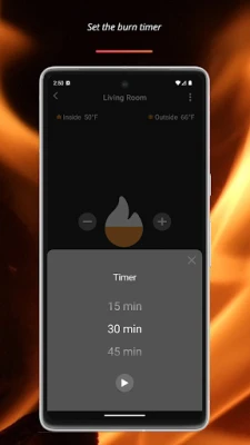 IntelliFireアプリは、スマホやタブレット、音声で暖炉を遠隔操作。炎の高さ、温度、タイマーなど細かく調整し、いつでも理想の快適空間を実現します。