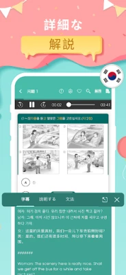 MigiiのTopik Korean Examは、TOPIK IとIIの全セクションに加え、韓国での就労を目指す方のためのEPS TOPIK準備も網羅しています。12,000を超えるTOPIK問題と40以上のEPS TOPIK問題からなる膨大なデータベースは、あなたの学習を強力にサポート。記述問題においては、具体的な例文と設問を通じて、語彙力、文法、文章構成、文脈分析能力を飛躍的に向上させます。スマートフォン一つあれば、通勤中や休憩時間など、いつでもどこでも学習可能。記憶の定着を助けるスマートな技術も導入されており、学習効率を最大限に高めながら、無理なくTOPIK合格へと導きます。今日からTopik Korean Examで、あなたの韓国語学習を次のレベルへと進めましょう。