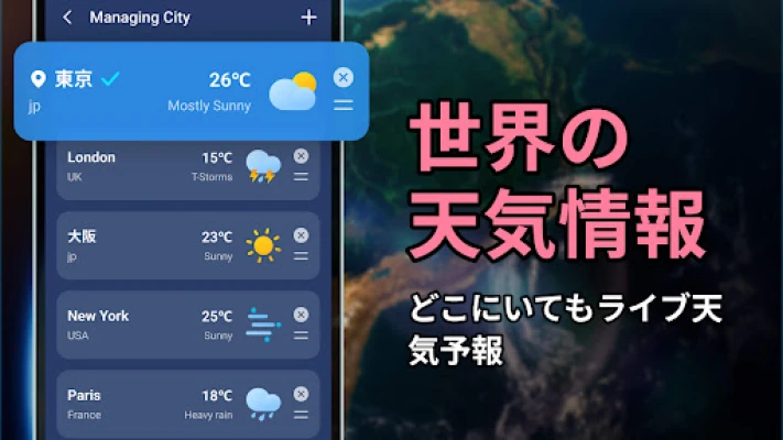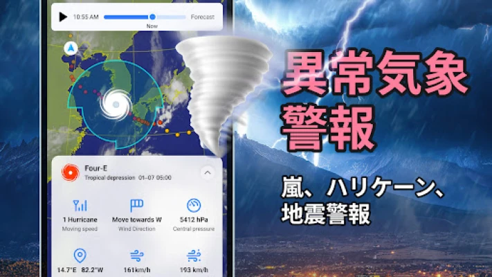 突発的な悪天候に先んじて備えるための、タイムリーな警告通知は不可欠です。異常な高温や低温、台風、竜巻、落雷を伴う嵐、猛吹雪、洪水、津波、山火事、さらには放射線リスクや農業に関する懸念に至るまで、潜在的な危険を事前に察知し、あなたと大切な人を守ります。加えて、世界中のあらゆる場所の天気を24時間365日リアルタイムで追跡。直感的なインターフェースを通じて、降水量予測、体感温度、大気質指数(AQI)、視程、風向き、風速、そして気圧変動といった、多岐にわたる詳細情報を瞬時に把握できます。