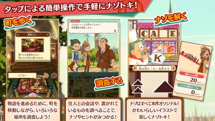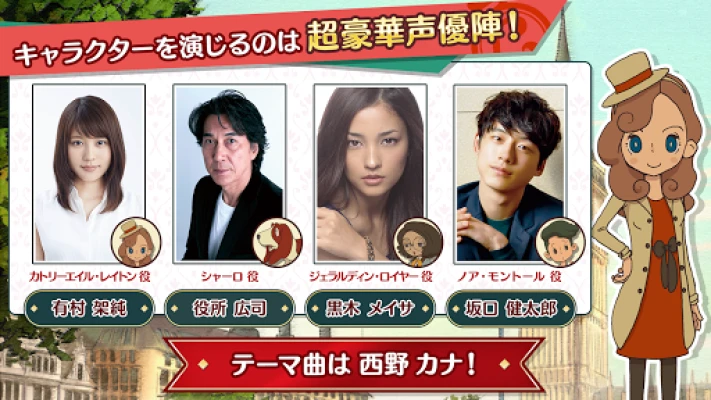 レイトン教授の娘、カトリーエイル・レイトンがロンドンを舞台に難事件に挑む。有村架純のCVが彩る物語。スマホに最適化された簡単なタップ操作で、奥深いナゾ解きを気軽に体験できます。
