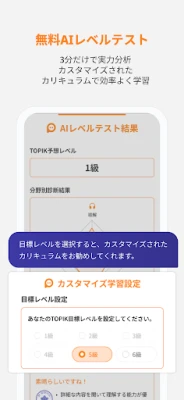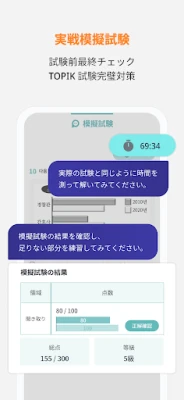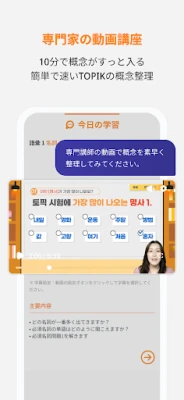 TOPIK試験のスコアアップに特化した学習ツール。豊富な練習問題と丁寧な解説で、基礎から応用まで着実に学べます。苦手分野を特定し、効率的に克服するための機能が充実。目標達成を力強く後押しします。いつでもどこでも、自分のペースでTOPIK対策を進めましょう。