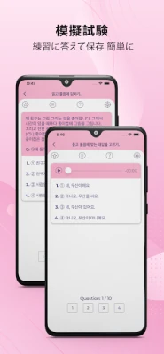 このアプリは、TOPIK IとTOPIK IIの両方に対応した多彩な学習モジュールを提供します。ネイティブスピーカーの音声による聴解力強化から、長文読解力を磨く読解練習、さらに韓国語の基礎を固める語彙力と文法力の徹底的な演習まで、あらゆるスキル領域を網羅。実践的な模擬試験を通じて、本番さながらの環境で自分の実力を試すことができ、弱点克服に役立ちます。