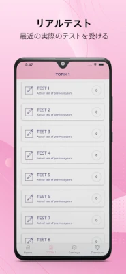 韓国語能力試験(TOPIK)での高得点を目指すあなたへ、**Topikテスト**は究極の学習プラットフォームとして設計されています。5,000問を超える膨大な練習問題に加え、過去60回分の試験を網羅した包括的なコンテンツが、あなたのTOPIK対策を強力にサポート。学習の進捗はアプリが着実に記録し、まるであなた専用の参考書のように、目標達成への道のりを確実に導きます。