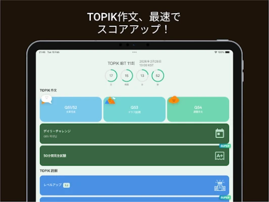 「TOPIK 쓰기 - Easy6」は、51番の文章完成から54番の意見陳述まで、全タイプの問題に対応した豊富な練習機会を提供します。高得点模範解答との比較学習や、自動で記録される学習履歴とAIフィードバックを活用し、効率的に弱点を克服できます。また、公式試験の원고지(原稿用紙)形式を反映した文字数カウンターで実践的なスキルを磨き、試験本番で最大限の力を発揮できるでしょう。TOPIK IIの쓰기問題全範囲に特化し、AIによるリアルタイムフィードバックを提供する唯一無二のツールとして、「TOPIK 쓰기 - Easy6」は中級レベルの韓国語学習者のスコアアップを強力にサポートします。