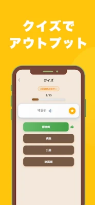 本アプリは、すでに累計1万を超える多くの韓国語学習者から絶大な支持を得ている、信頼と実績を兼ね備えた単語学習アプリです。TOPIK頻出の初級から高級までの3300語を厳選収録し、この一本で試験対策から実用的な会話力までを網羅できます。ゲーム感覚で楽しく続けられる「15単語ステップ学習」システムは、飽きることなく学習習慣を確立できるよう設計されており、全ての単語と例文にはネイティブ音声が付帯。これにより、正確な発音を習得しつつ、リスニング能力も同時に磨き上げることが可能です。